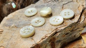 Trochus Shell Buttons are expertly produced from the spiralling, triangular shaped Trochus shell. A luminescent creamy colour, each blank is ground to specific sizes and thicknesses.